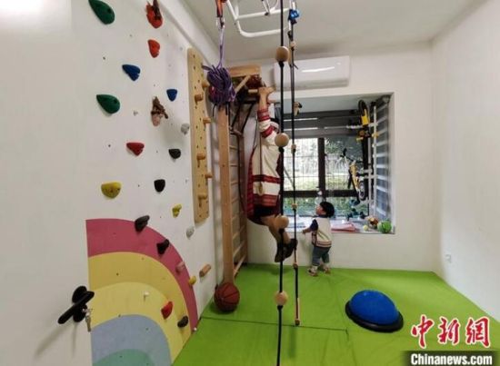 4月1日,廣西南寧,沙部·魯比在家中打造微型“運動場”。當天,在桂臺灣教師沙部·魯比喬遷新居,實現(xiàn)跨越海峽的“安居夢”。 中新社記者 張廣權 攝