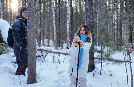 12月20日,國(guó)際媒體采風(fēng)團(tuán)一行走進(jìn)長(zhǎng)白山聚龍火山石林體驗(yàn)雪谷穿越,3.1公里的徒步路線上,火山浮石覆雪而立,溪水潺潺在白雪間流過(guò),原生態(tài)森林雪景讓采風(fēng)團(tuán)成員不時(shí)駐足驚嘆,快門聲此起彼伏。
