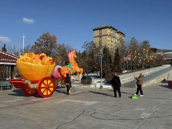和龍市“紅太陽永照邊疆·駿馬奔騰賀新春”新春燈會即將華彩啟幕。昂首奔騰的駿馬燈組氣勢如虹,濃郁熱烈的中國紅元素,與富有民族風情的特色花燈相映生輝,將新春的喜慶氛圍渲染得格外醇厚。