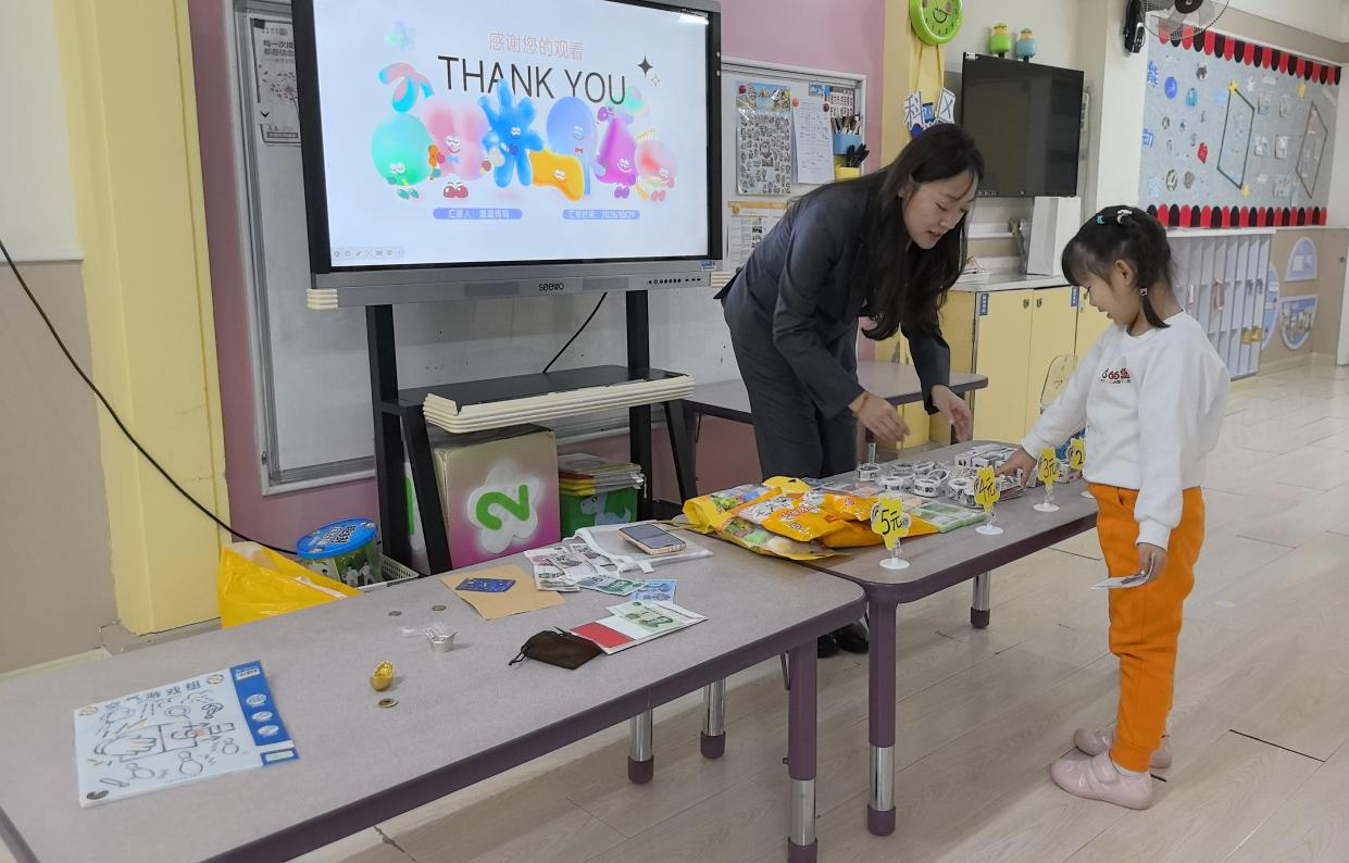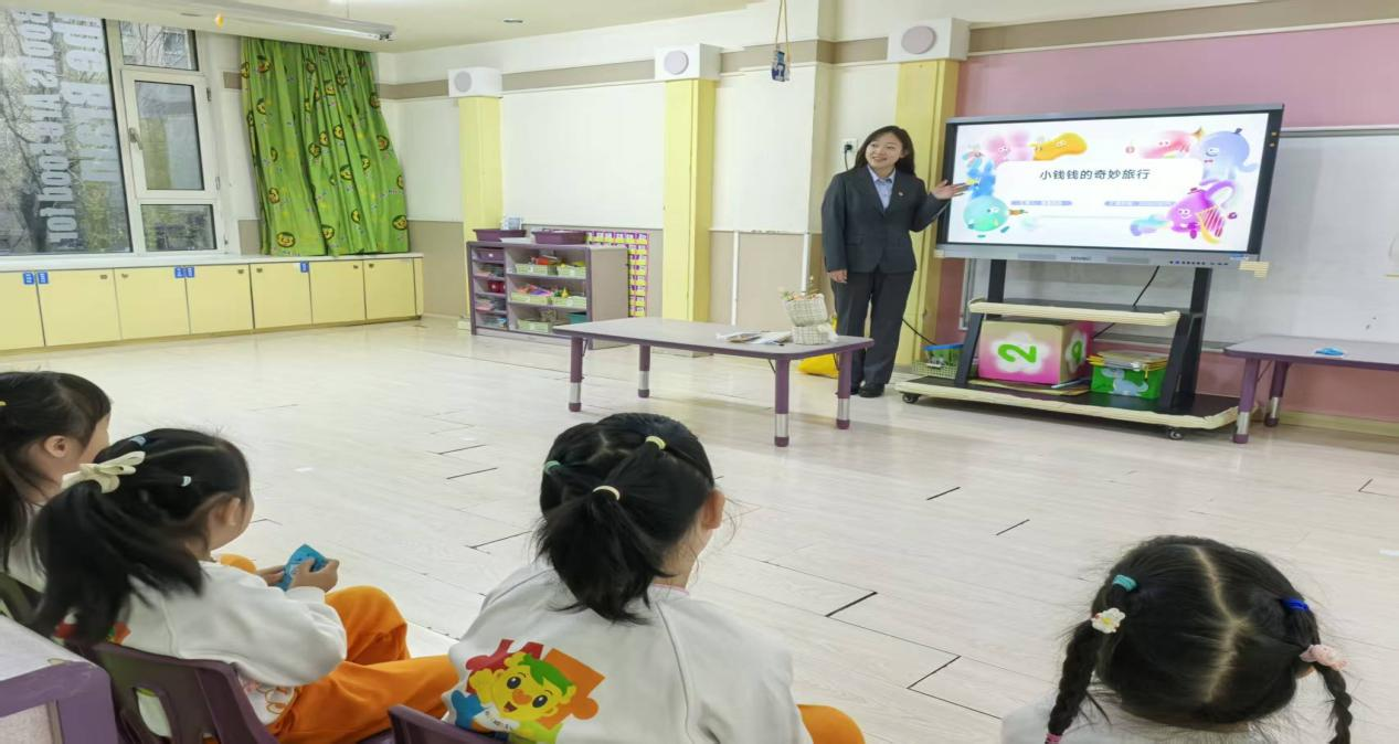 考慮到幼兒注意力特點(diǎn),主講人王琳還設(shè)計(jì)了“錢幣小法官”游戲:她展示不同場(chǎng)景卡片,比如“小朋友幫媽媽保管手機(jī),不隨便點(diǎn)開付款鏈接”“陌生人要借手機(jī)轉(zhuǎn)賬,小朋友說‘要問爸爸媽媽’”,讓孩子們判斷“做得對(duì)不對(duì)”。孩子們積極舉手,有的站起來模仿卡片里的小朋友說話,有的拉著同伴一起討論,原本抽象的安全規(guī)則,變成了能判斷、能模仿的具體行為,現(xiàn)場(chǎng)笑聲與回答聲此起彼伏,連老師都忍不住加入互動(dòng)。