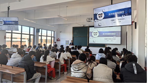 活動現(xiàn)場,臨河街支行的工作人員結(jié)合高校校園詐騙的高發(fā)特點(diǎn),以通俗易懂的語言為師生們帶來了一場干貨十足的反詐宣講。宣講環(huán)節(jié)中,工作人員首先從“什么是電信網(wǎng)絡(luò)詐騙”切入,系統(tǒng)講解了電信網(wǎng)絡(luò)詐騙的定義、常見類型及隱蔽性、迷惑性特點(diǎn),讓師生們對這類違法犯罪行為建立起清晰認(rèn)知。隨后,通過“以案說詐”的形式,工作人員選取了近年來高發(fā)的校園貸、刷單返利、冒充老師同學(xué)借錢、虛假購物退款等典型詐騙案例,深入剖析了詐騙分子的作案手法、話術(shù)陷阱以及受害者的受騙心理,用真實(shí)案例敲響安全警鐘,讓師生們直觀感受詐騙的危害性。