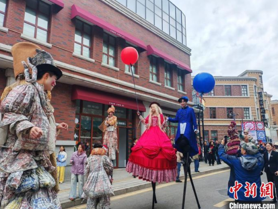 長春市北京大街西歷史文化街區(qū)的巡游表演。
