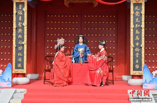 10月7日,吉林長春文廟舉行了一場明制漢婚沉浸式展演。漢服愛好者依次呈現(xiàn)奠雁、同牢、合巹等傳統(tǒng)禮儀,生動還原明代婚俗。現(xiàn)場通過流程講解與道具展示,解讀禮儀背后古人對婚姻與美好生活的寄愿。中新社記者 張瑤 攝