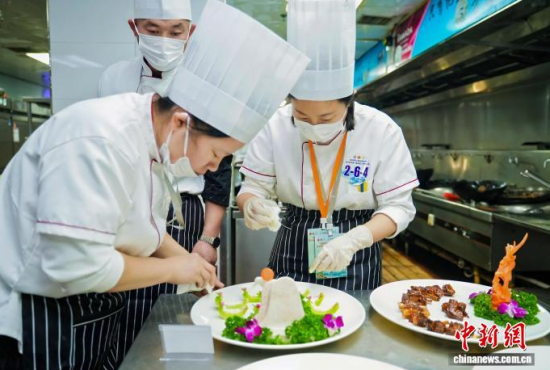 當(dāng)天上午,多支代表隊(duì)在后廚忙碌,操作臺(tái)上,參賽廚師依照藥膳指導(dǎo)師開(kāi)具的方子,將精選的人參等藥材進(jìn)行預(yù)處理,再與母雞、松花江魚(yú)等主料一同入鍋!斑@道湯適合體虛者,我們控制了人參用量,確保其口味和養(yǎng)生功效!币晃贿x手介紹。