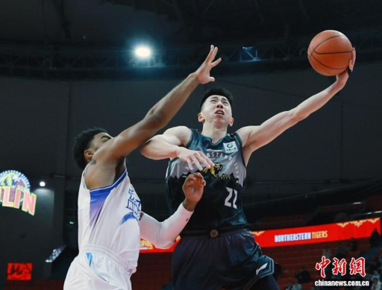 吉林隊(duì)22號(hào)賈昊(黑衣)正在上籃!墙饾 攝