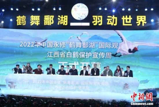 當(dāng)日,以“鶴舞鄱湖 羽動(dòng)世界”為主題的2022年中國(guó)永修“鶴舞鄱湖”國(guó)際觀鳥(niǎo)大會(huì)在“中國(guó)候鳥(niǎo)小鎮(zhèn)”江西永修縣吳城鎮(zhèn)開(kāi)幕,活動(dòng)旨在以候鳥(niǎo)為媒、以鄱湖為景,開(kāi)啟觀鳥(niǎo)親鳥(niǎo)、愛(ài)鳥(niǎo)護(hù)鳥(niǎo)的廣闊天地,架起交流溝通、開(kāi)放合作的友誼橋梁。