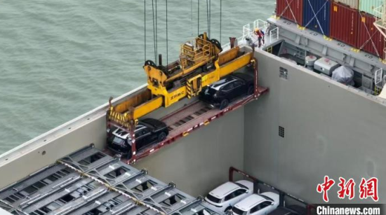 中新網(wǎng)廣州3月3日電 (郭軍 陳秀慧 黎舒婷)3月1日,在廣州海事部門(mén)的保障下,廣州港南沙港區(qū)外貿(mào)班輪“GREEN QINGDAO”輪裝載著68輛國(guó)產(chǎn)新能源汽車(chē),緩緩駛離港口,開(kāi)啟了前往巴西的航程。此次運(yùn)輸采用了中遠(yuǎn)海運(yùn)特運(yùn)48英尺“可折疊框架集裝箱”的創(chuàng)新模式,標(biāo)志著南沙港區(qū)在新能源汽車(chē)海運(yùn)領(lǐng)域取得重大突破。