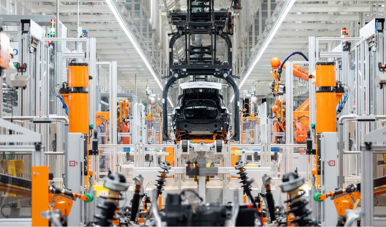 全域IT架構(gòu)的引入,使得所有設(shè)備、流程和數(shù)據(jù)在云端互聯(lián)互通。最直觀的體現(xiàn)是在焊裝車間,824臺機器人協(xié)同作業(yè),焊接自動化率達到100%,每輛車的4000多個焊點全部由機器人精準完成?傃b車間視覺檢測系統(tǒng)通過20臺高精度相機進行3D激光與2D光譜交叉掃描,將裝配質(zhì)量檢測精度提升至0.2毫米。