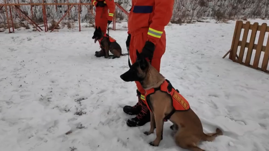 吉林長春:新搜救犬冬訓(xùn)磨練“十八般武藝”