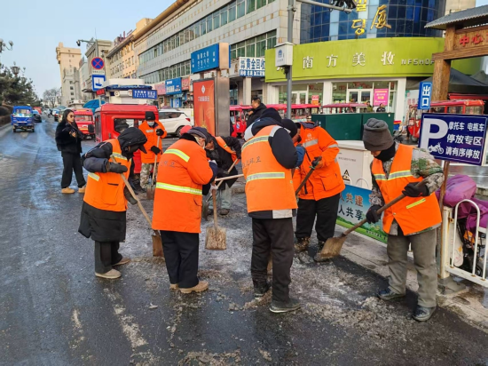 同時(shí)走訪沿街商戶、商場,督促相關(guān)負(fù)責(zé)人及時(shí)清除背光區(qū)冰面,清理時(shí)根據(jù)實(shí)際情況采用人工清理和撒布融雪劑相結(jié)合的方式,確保道路整潔安全。本次行動(dòng),城管執(zhí)法局出動(dòng)執(zhí)法人員及環(huán)衛(wèi)人員共計(jì)200余人,廣泛動(dòng)員臨街商戶、相關(guān)單位積極配合,投入到除冰工作中來。