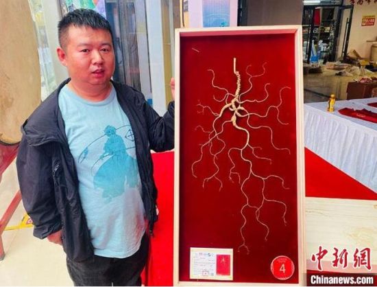 參商張?chǎng)╀邘?lái)的百年參齡野山參(干品)當(dāng)選“參王”。李丹 攝