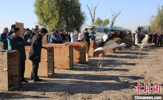 中新網(wǎng)長(zhǎng)春11月19日電 (張瑤 王萬(wàn)峰)吉林省林業(yè)和草原局19日介紹,該局近日組織野生動(dòng)物救護(hù)部門(mén)將救助的11只東方白鸛成功護(hù)送到天津七里海國(guó)家濕地公園與已遷徙至那里的種群匯合。這是吉林省第一次大規(guī)模跨省護(hù)送“鳥(niǎo)界國(guó)寶”東方白鸛歸隊(duì)。