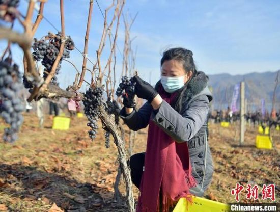 12月9日,吉林集安鴨綠江河谷,游客采摘冰葡萄。集安市所在的鴨綠江河谷與法國著名葡萄酒產(chǎn)地羅納河谷處于同一緯度,同屬世界葡萄酒黃金生產(chǎn)帶,當(dāng)?shù)厮a(chǎn)的冰葡萄是釀制冰酒的主要原料。目前,鴨綠江河谷冰葡萄已經(jīng)進(jìn)入最佳采摘時期。(完)