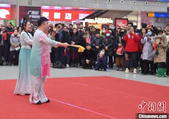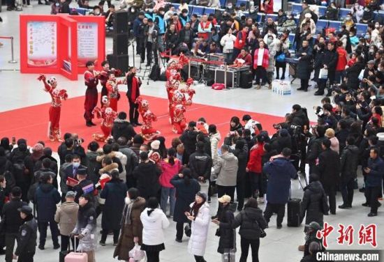 1月26日,在長(zhǎng)春站候車(chē)大廳,長(zhǎng)春站、沈陽(yáng)鐵路公安局長(zhǎng)春公安處等多個(gè)部門(mén)聯(lián)合為旅客帶來(lái)了系列精彩表演, 吸引大批過(guò)往旅客駐足觀看、參與。當(dāng)天,2024年春運(yùn)啟動(dòng)。2024年春運(yùn)自1月26日開(kāi)始至3月5日結(jié)束,為期40天。春運(yùn)期間,長(zhǎng)春站預(yù)計(jì)發(fā)送旅客341萬(wàn)人次,日均8.5萬(wàn)人次。(完)