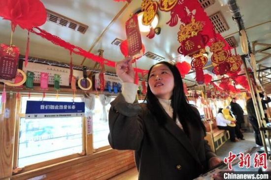 長春市民乘坐54路有軌電車文旅專列。