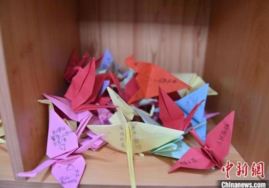這些千紙鶴是轄區(qū)學(xué)生們送來(lái)的禮物,每個(gè)千紙鶴上面都有一句祝福的話(huà),讓“木蘭警務(wù)團(tuán)”的女警們十分感動(dòng)。 張瑤 攝