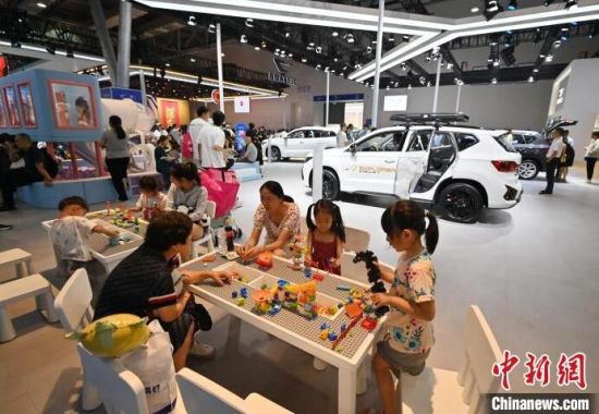 7月13日,在第21屆長春國際汽車博覽會(huì)上,小朋友在淘氣堡玩耍。本屆長春汽博會(huì)有全球124個(gè)品牌的展車亮相,現(xiàn)場設(shè)置了許多游戲體驗(yàn)項(xiàng)目,吸引小朋友們參與。 (中新社記者 張瑤/攝)