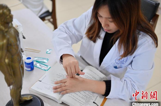 10月23日,吉林長(zhǎng)春,林玉花在練習(xí)針灸。來自泰國(guó)的林玉花是長(zhǎng)春中醫(yī)藥大學(xué)中醫(yī)內(nèi)科學(xué)的研究生,經(jīng)過一年多的深造,她越發(fā)愛上博大精深的中醫(yī)和中國(guó)傳統(tǒng)文化。林玉花說,她希望把在中國(guó)學(xué)到的中醫(yī)技藝帶回家,將來開一家中醫(yī)館。中新社記者 張瑤 攝