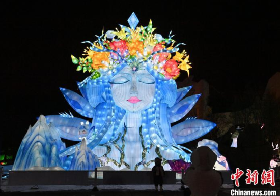 2025年1月1日晚,游客在位于吉林長春的長影世紀城欣賞花燈。當天,長影世紀城內(nèi)超百組炫彩花燈同時點亮,營造出一個夢幻般的璀璨世界,為新年的到來增添喜慶氣氛。中新社記者 張瑤 攝