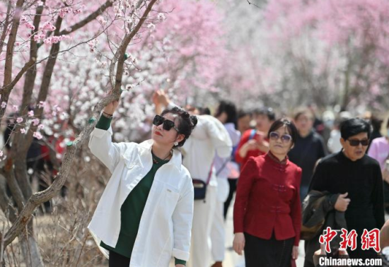 4月23日,吉林長(zhǎng)春,市民在櫻花島賞花。隨著氣溫升高,長(zhǎng)春街頭及公園里的春花競(jìng)相綻放,為城市增添亮麗色彩,吸引市民盡享春日美景。中新社記者 張瑤 攝