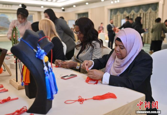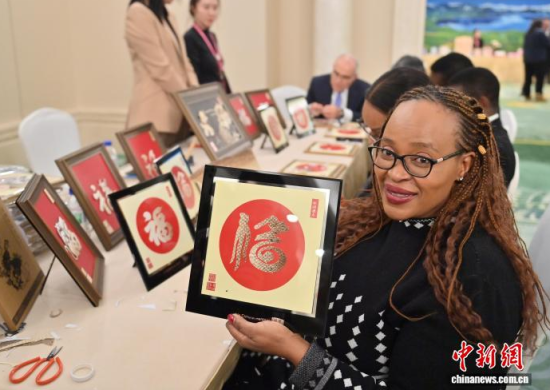 12月16日,由中國(guó)外交部組織的駐華使節(jié)代表團(tuán)赴吉林省參訪。當(dāng)晚,代表團(tuán)成員體驗(yàn)了查干湖魚皮制作、長(zhǎng)白山滿族剪紙、白氏面塑、繩編和趙家傳統(tǒng)古箏技藝等多項(xiàng)吉林省非物質(zhì)文化遺產(chǎn)代表性項(xiàng)目,近距離了解中國(guó)傳統(tǒng)技藝及其傳承現(xiàn)狀。中新社記者 張瑤 攝