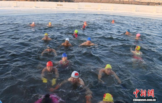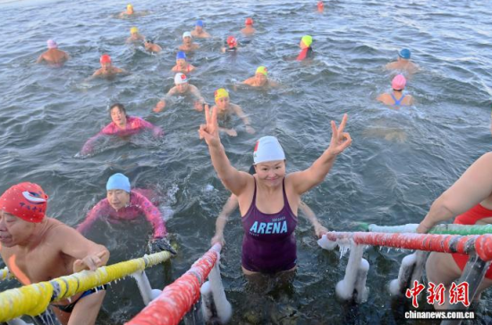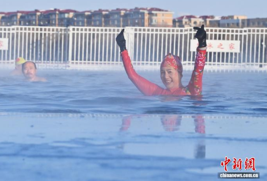 長春“銀發(fā)泳者”在嚴寒中破冰入水迎新年