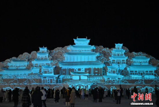 吉林長白山點亮雪雕版“云頂天宮”