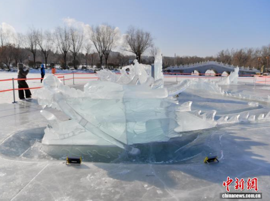 1月20日,在長(zhǎng)春市南湖公園,“龍鳳呈祥”冰雕吸引市民駐足觀看 。該冰雕主體為一條長(zhǎng)達(dá)45米的冰龍與一只展翅約20米的冰鳳凰組成,兩者遙相呼應(yīng),蜿蜒盤(pán)旋在冰面上。冰雕充分利用了北方冬季的自然條件,在陽(yáng)光下晶瑩剔透,成為公園內(nèi)一道醒目的冬日景觀。中新社記者 張瑤 攝