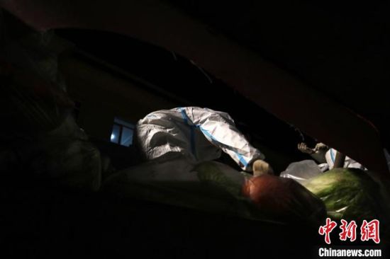 中新網通化1月26日電 (蒼雁 孫博妍)雖然已到26日凌晨,通化卻并未“睡去”。一輛滿載蔬菜的面包車快速駛過落雪的街路,停在左岸樺苑A區(qū)門前!斑@是‘今天’(25日)到達的最后一輛送菜車!