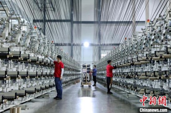 吉林市化纖企業(yè)生產(chǎn)車(chē)間正在進(jìn)行收絲作業(yè)。(資料圖) 凌西政 攝