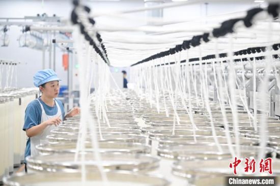 12月5日,吉林省吉林市,工作人員在吉林化纖生產(chǎn)線上巡查。(資料圖) 中新社記者 田雨昊 攝