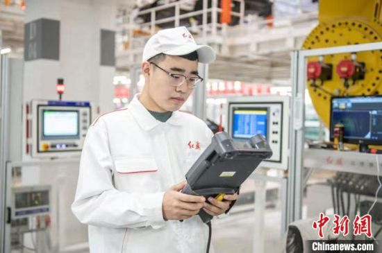 趙達在車間檢測設備。(資料圖) 中國一汽供圖