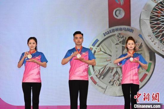 發(fā)布會(huì)上展示賽事獎(jiǎng)牌。吉林市委宣傳部供圖