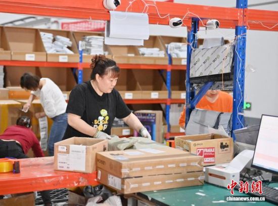2025年5月30日,在位于琿春的跨境電商保稅分撥中心,工作人員在分揀商品。 (資料圖)張瑤 攝
